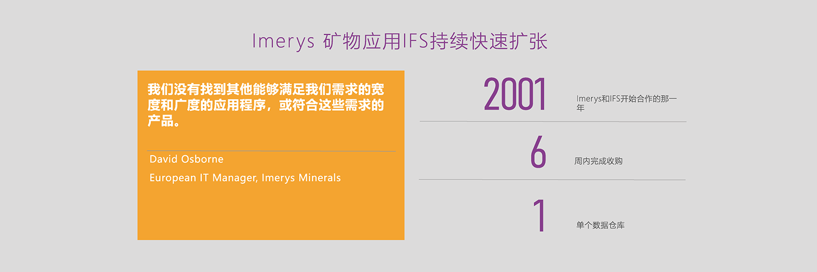 在不影响业务本身的情况下,迎接动态增长的挑战是Imerys Minerals取得成功的重要因素,也是该公司利用IFS应用程序创建敏捷业务的重要因素。