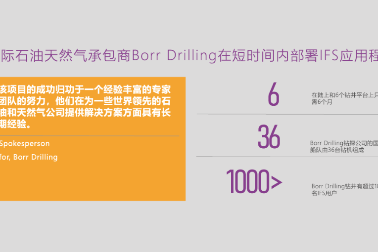 IFS软件为销售和合同管理,工程,项目管理,文档管理,资产和服务管理,供应链分包(包括为陆上和海上油气公司的财务和人力资本管理)提供全面的企业级业务支持。